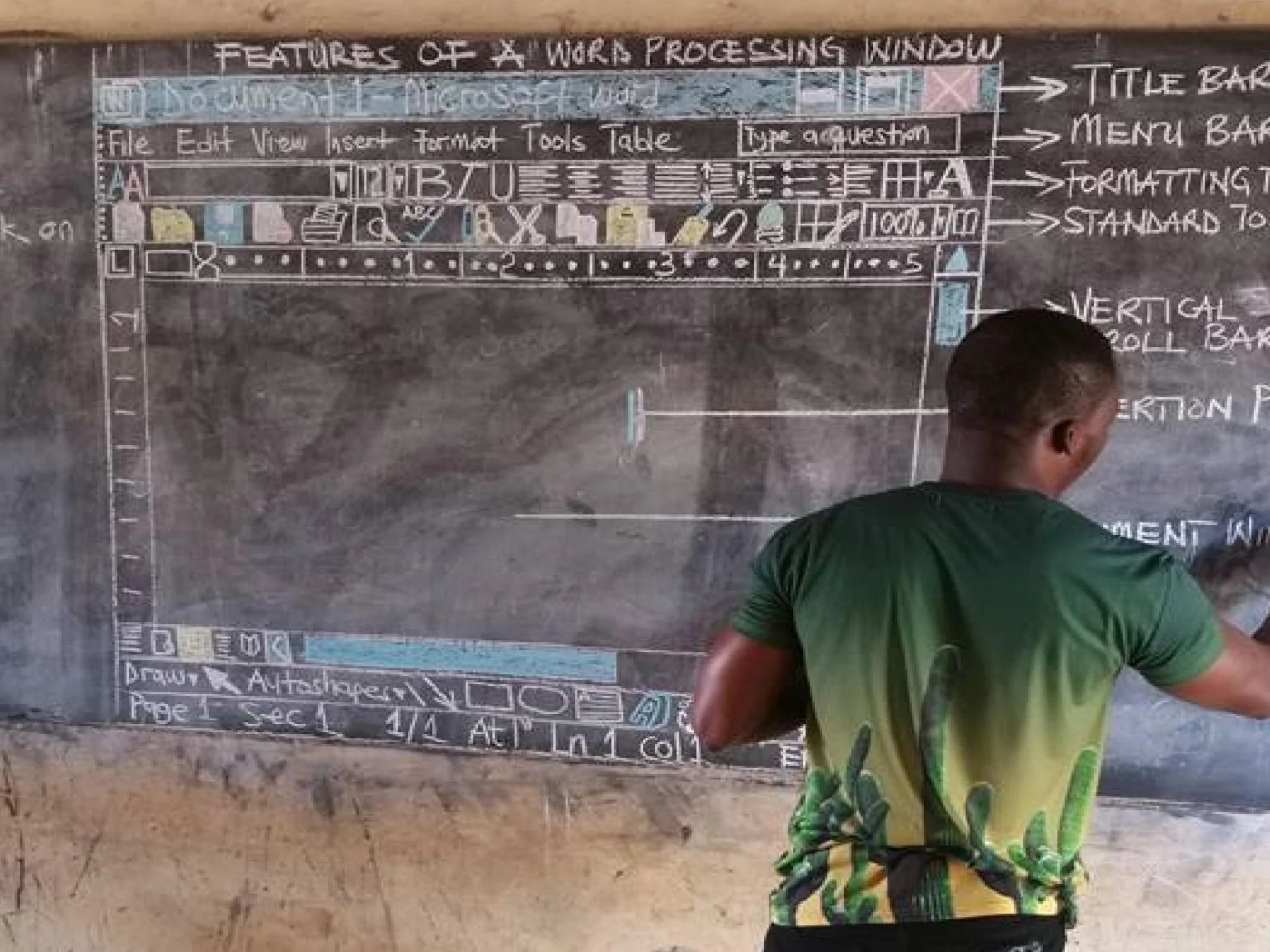 Akoto draws a computer screen on his blackboard in surprising detail. Malaka Gharib of NPR talked to Akoto and when asked about if his students are able to apply the skills, Akoto responded:
